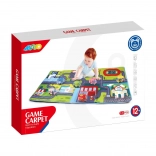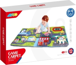 Objavte zábavný koberec na hranie BAYO s motívom mesta, ktorý deťom ponúkne hodiny tvorivej hry. Nechýbajú vykreslené cesty, semafory, kruhový objazd a budovy a navyše 6 mäkkých vankúšikových autíčok na okamžité hranie. Koberec chráni pred chladom z podlahy, je vhodný od 12 mesiacov a má rozmery 80 × 158 cm.