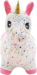Plyšový skákací jednorožec PlayTo je navrhnutý pre bezpečnú a aktívnu zábavu doma aj na záhrade. Hebký povrch je príjemný na dotyk a nešmykľavý, takže sa deti môžu isto odrážať a pohodlne držať za uši. Stlačením medzi ušami sa spustí realistický zvuk koníka, ktorý podporí fantáziu a interaktívnu hru.