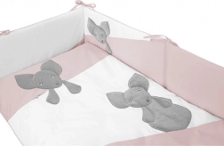 Jemná kombinácia ružovej, bielej a sivej s aplikáciami zvieratiek vytvára útulné prostredie, ktoré sa hodí do každej detskej postieľky.