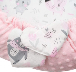 Súčasťou je vankúšik v tvare srdca a jemná perinka. Minky s výstupkami podporuje senzomotoriku a dodáva extra komfort.