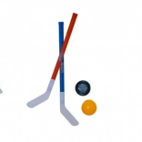 Plastové pozemné hokejky 72 cm s florbalovou loptičkou a pukom (2 ks)