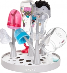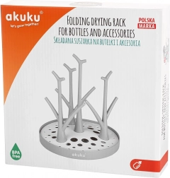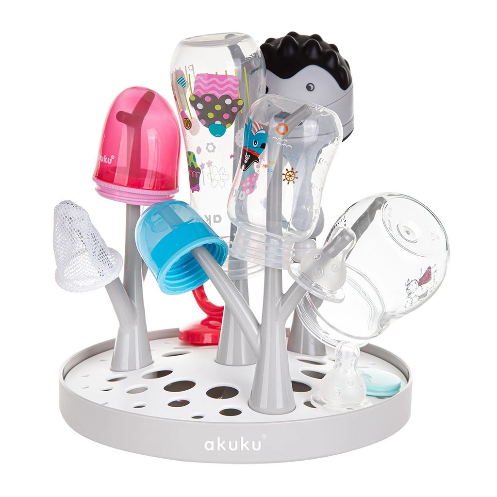 Odkvapkávač na fľaše a príslušenstvo AKUKU je ideálnou voľbou pre rodičov, ktorí chcú mať detské potreby vždy suché a pripravené na použitie. Stromčekový systém kolíkov udrží fľaše, cumlíky aj viečka vo zvislej polohe, aby voda rýchlo odtekala a vzduch mohol voľne cirkulovať. Kompaktné rozmery a skladacia konštrukcia umožňujú jednoduché prenášanie a skladovanie, takže sa hodí do kuchyne aj do cestovnej tašky.