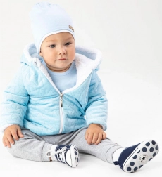 Praktické zapínanie na zips po celej dĺžke uľahčí obliekanie bez zbytočného prevliekania cez hlavičku. Súčasťou je pohodlná bavlnená čiapočka, ktorá jemne obopne hlavu a doplní celý outfit do chladného počasia.