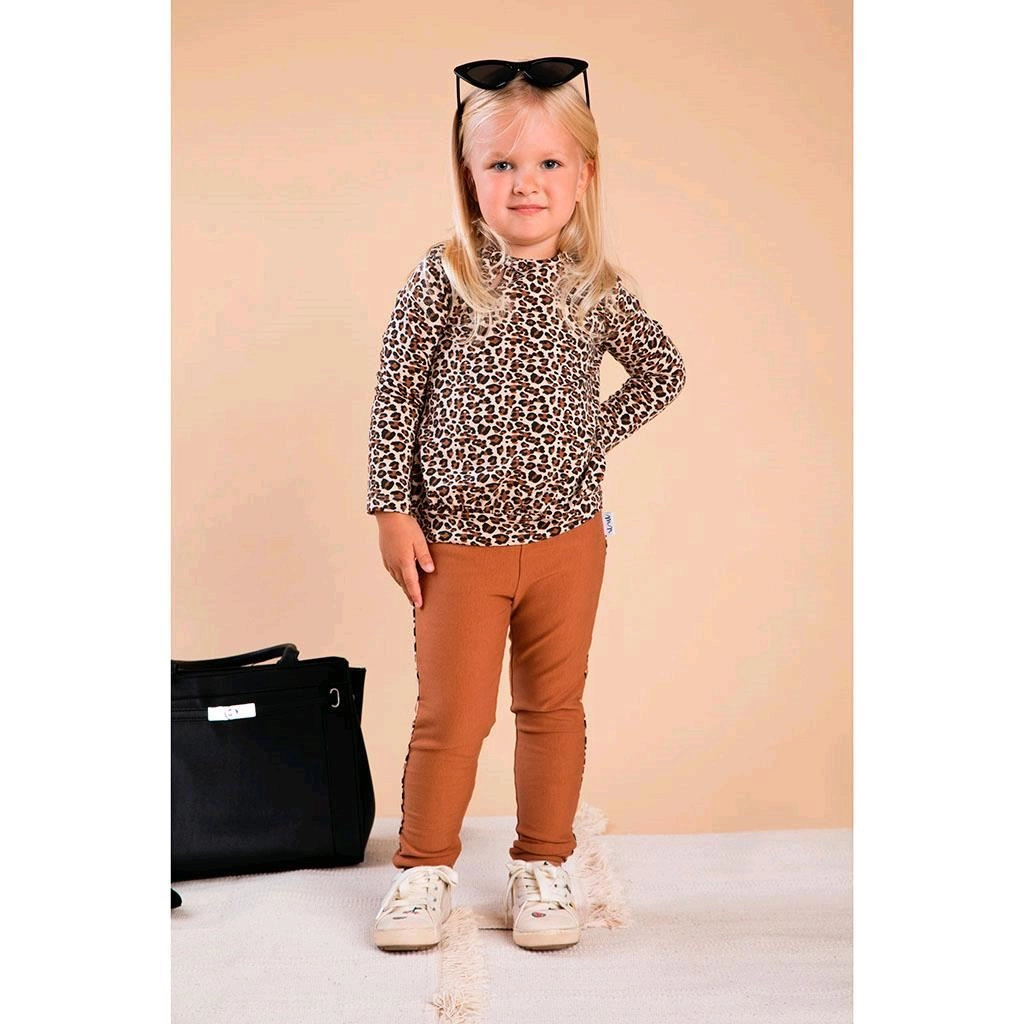 Dizajn s leopardím lemom na bokoch dodáva originálny vzhľad, ktorý ľahko zladíte s body, tričkami či mikinami. Zúžené nohavice pomáhajú legínam lepšie sedieť a nevyhŕňať sa pri pohybe.