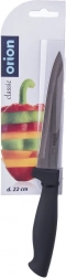Kompaktný a všestranný kuchynský nôž na každodenné použitie. Ostrá čepeľ z nehrdzavejúcej ocele si pri správnej starostlivosti dlhodobo udržiava ostrosť, rukoväť z odolného plastu v čiernej farbe zabezpečuje stabilný úchop bez kĺzania. Skvelá voľba na krájanie, sekanie aj jemné porciovanie.