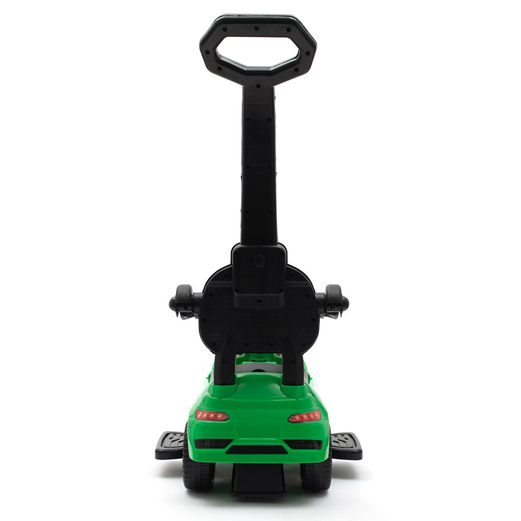Štýlové detské odrážadlo BABY MIX Racer v zelenej farbe spája zábavu a bezpečie. Ponúka vodiacu tyč pre rodičov, odnímateľné bezpečnostné prvky (opierky rúk a podnožky), zvukový panel a úložný priestor pod sedadlom. Vďaka profilovanému sedadlu, pohodlnému operadlu a blokáde proti prevráteniu je ideálne na prvé jazdy detí od 12 mesiacov.