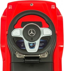 Trojramenný volant s logom MERCEDES ponúka klaksón, veselé melódie a zvuk motora pre ešte autentickejší zážitok z jazdy (napájanie 2× AA, nie sú v balení).