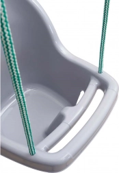 Táto sivá závesná hojdačka ponúka deťom bezpečné a pohodlné hojdanie vďaka vysokému operadlu a prednému bezpečnostnému dielu. Konštrukcia z kvalitného plastu je odolná voči počasiu, ľahko sa čistí a dlhodobo si zachováva farbu. Vďaka dĺžkovo nastaviteľným lanám ju jednoducho prispôsobíte rôznym výškam zavesenia v interiéri aj exteriéri.