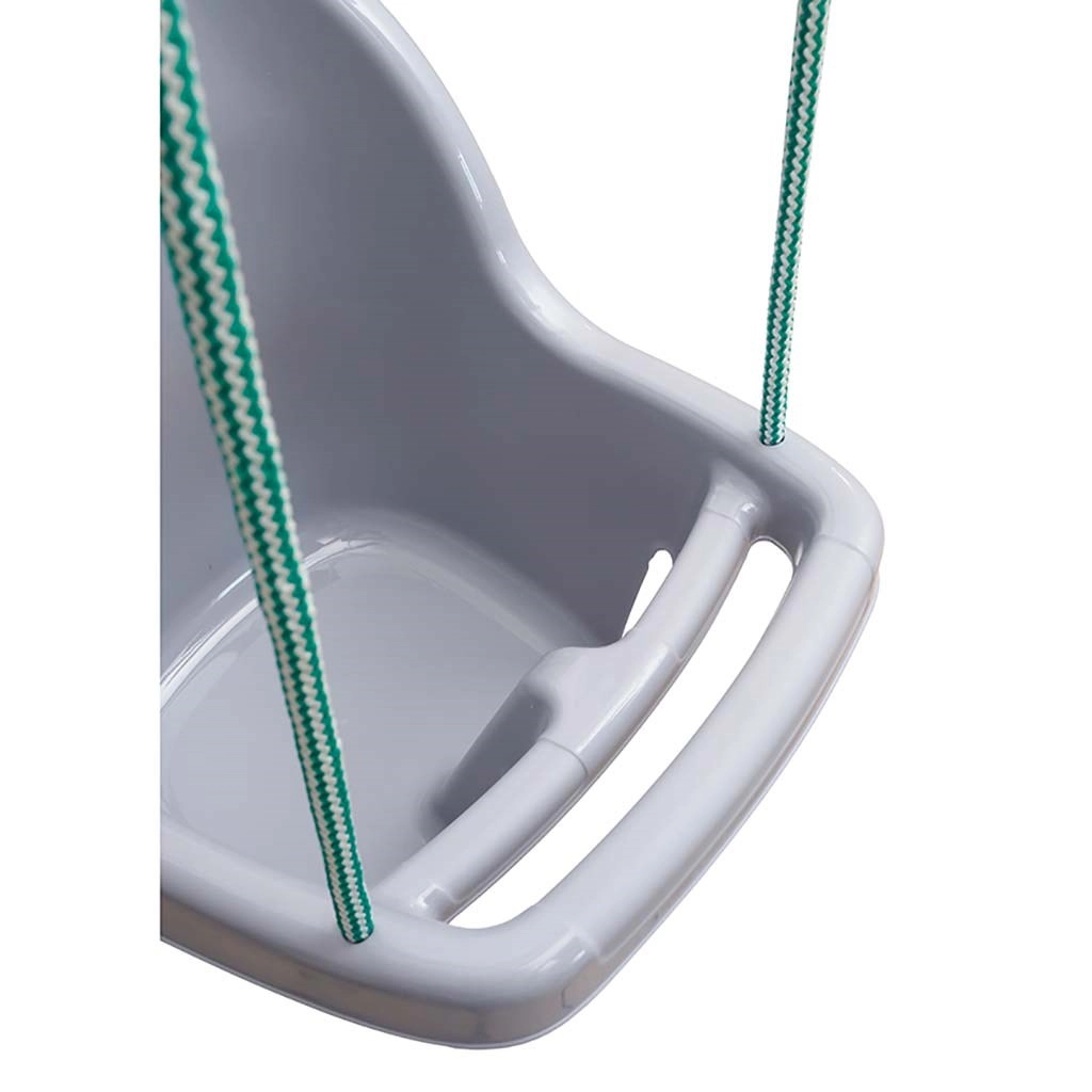 Ergonomicky tvarované sedadlo s vysokým operadlom a prednou oporou drží dieťa v bezpečnej polohe a zvyšuje komfort pri hojdání.