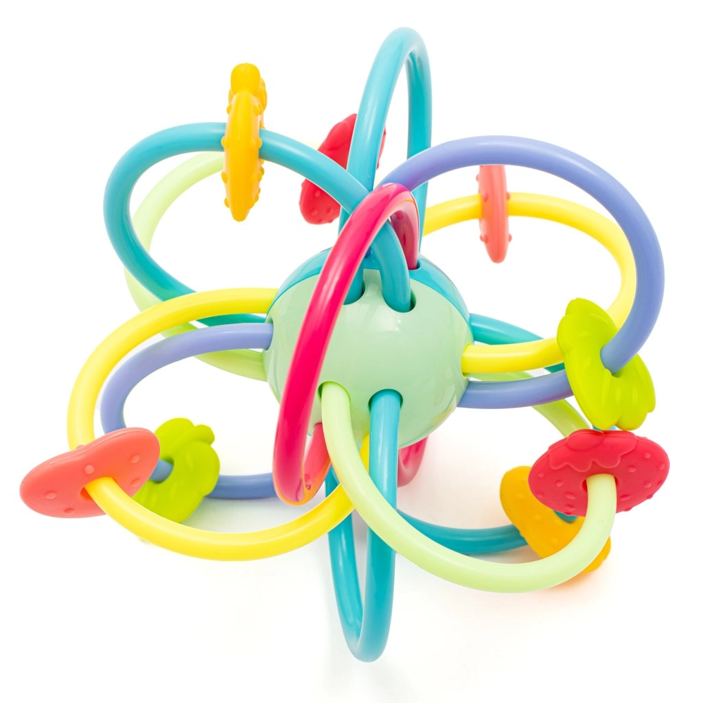 Toto multifunkčné hryzátko s jemnou hrkálkou prináša deťom úľavu pri prerezávaní zúbkov a zároveň zabaví ich zmysly. Mäkké prvky masírujú ďasná, zatiaľ čo hrkálka stimuluje sluch a pomáha rozvíjať koordináciu oko–ruka. Vďaka ľahkej konštrukcii a premyslenému tvaru ho dieťa ľahko uchopí z akéhokoľvek uhla.
