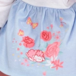 Sophia má šaty s jahodovo-vanilkovými motýľmi, ružové legíny a topánočky, ktoré z nej robia štýlovú bábiku.