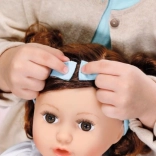 Bábika má hnedé vlásky, ktoré môžete česať modrou kefou a vytvárať rôzne účesy.