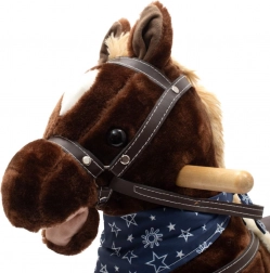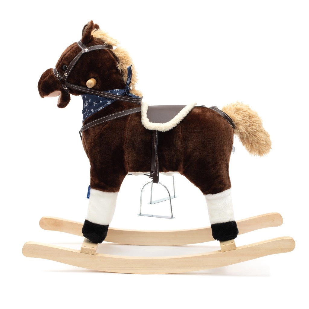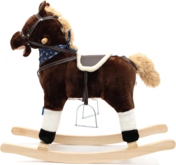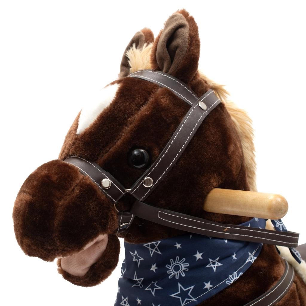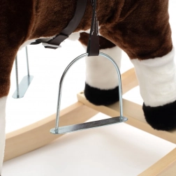 Hojdací koník Baby Mix prináša deťom autentický zážitok z jazdy. Je vyrobený z hebkého plyšu, má štýlovú šatku a na uškách ukryté tlačidlá, ktoré spustia zvuky cvalu, erdžanie, pohyb chvostíkom a pusuľkou aj kovbojskú pesničku. Profilované drevené hojdačky bránia prevráteniu, zatiaľ čo kovové strmene, rukoväte a pohodlné sedlo zabezpečujú komfort a stabilitu pri hojdání.