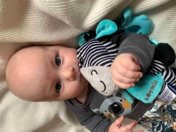 Hračka je ľahká, jednoducho prenosná a perfektne sa hodí na cesty. Výška cca 17 cm je akurát do malej rúčky, takže podporuje úchop a jemnú motoriku. Bezpečná od prvých dní života.