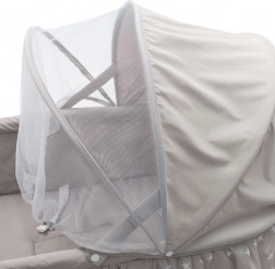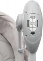 Integrovaný panel ponúka 12 upokojujúcich melódií a prírodné zvuky, ktoré pomáhajú bábätko upokojiť. Praktický časovač na 15, 30 alebo 60 minút zaistí, že sa hojdanie samo zastaví. Odnímateľná strieška s jemnou sieťovinou chráni pred hmyzom a zabezpečuje prúdenie vzduchu, zatiaľ čo mäkké polstrovanie a bezpečné uchytenie prinášajú vyšší komfort.