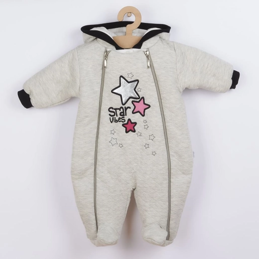 Vďaka kvalitným materiálom je kombinéza odolná, mäkká a pohodlná na každodenné nosenie. Elegantné ružové prevedenie s jemným leskom dodáva štýlový vzhľad, zatiaľ čo kapucňa chráni hlavičku pred zimou a vetrom.