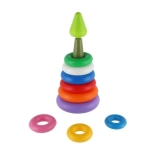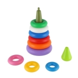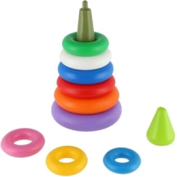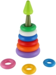 Každý krúžok má inú farbu, čo pomáha pri rozpoznávaní farieb a veľkostnej diferenciácii. Deti budú fascinované jasnými farbami a budú sa zabávať skladaním a rozkladaním pyramídy znovu a znovu.