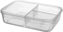 Praktický a odolný box na potraviny s objemom 1 l s delícími vložkami, vzduchotesným silikónovým tesnením a štyrmi zacvakávacími klipsami. Transparentné prevedenie pre okamžitú kontrolu obsahu, bez BPA, vhodné do umývačky, mikrovlnky (bez veka), chladničky aj mrazničky. Ideálny ako lunch box do práce, školy aj na cesty.