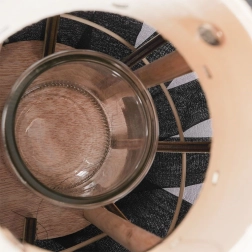 Odolná konštrukcia s textilným výpletom jemne rozptyľuje svetlo a podčiarkne ako moderný, tak aj industriálny (loft) štýl. Sklenený vložený valec s priemerom 8 cm pojme sviečku až do cca Ø 6,5 cm.