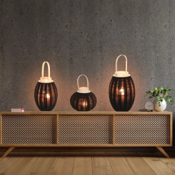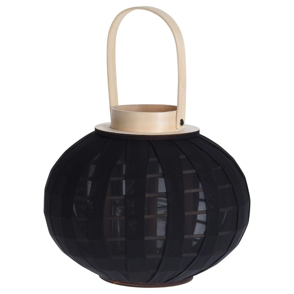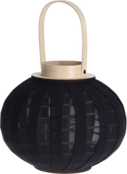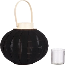 Elegantný čierny lampáš s prírodným dreveným madlom vytvára príjemnú atmosféru a bezpečne ukrýva plamienok v sklenenom valci. Vďaka kompaktným rozmerom 22 × 24 cm sa hodí na stôl, policu aj ako dekorácia na terasu či balkón.