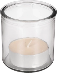 Priehľadný valec chráni plameň pred prievanom a zabezpečuje čisté horenie sviečky až do priemeru cca 6,5 cm.