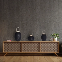 Čierna tkanina na rebrovanej konštrukcii vytvára moderný, industriálny výraz a jemne rozptyľuje svetlo.