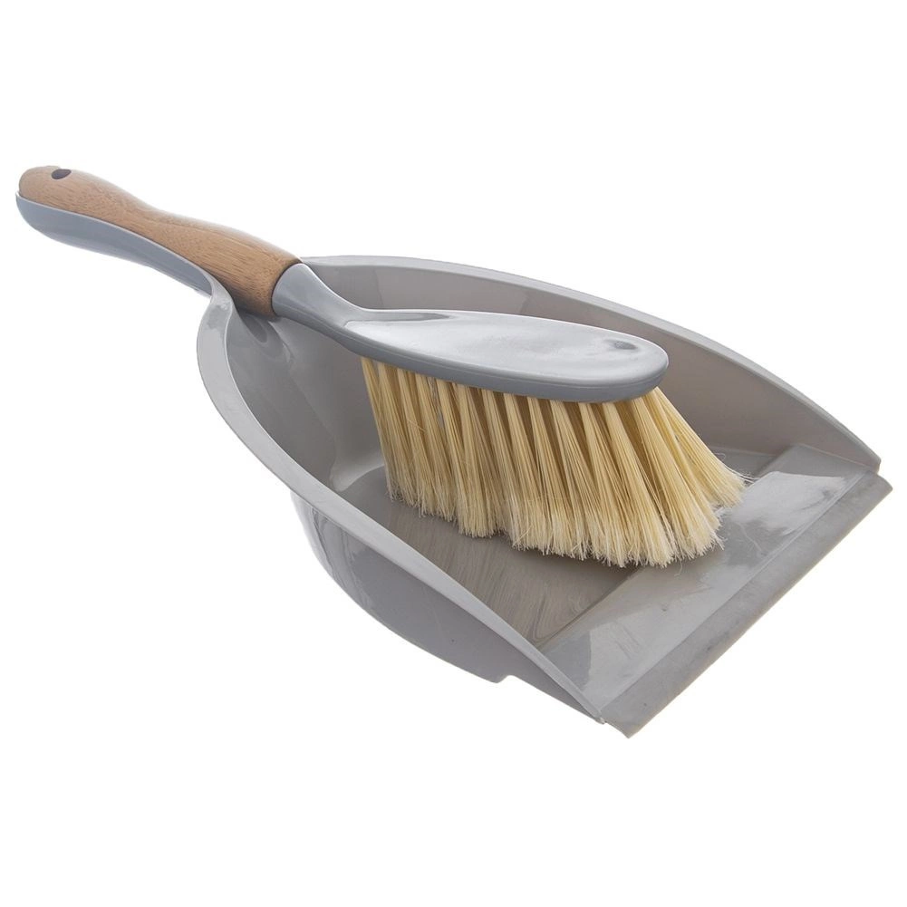Praktická sada na upratovanie – metlička s lopatkou v modernej sivej kombinácii s drevom. Lopatka má gumový rant pre perfektné prilnutie k podlahe, metlička s bambusovou rukoväťou a hustým vláknom účinne pozbiera prach, omrvinky aj srsť. Ideálna do každej domácnosti, jednoduché skladovanie vďaka otvorom na zavesenie.