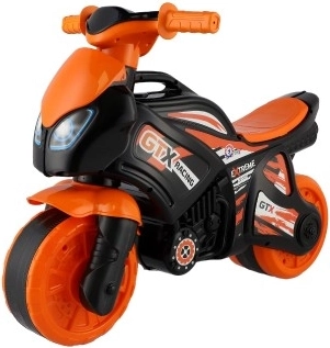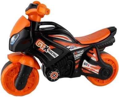 Detská odrážka motorka v športovom dizajne poteší všetkých malých milovníkov rýchlej jazdy. Vďaka odolnej plastovej konštrukcii je ideálna pre zábavné a bezpečné hranie. Dizajn je prevažne oranžovo-čierny s logami GTX Racing, ktoré dodávajú pocit skutočnej závodnej motorky.