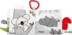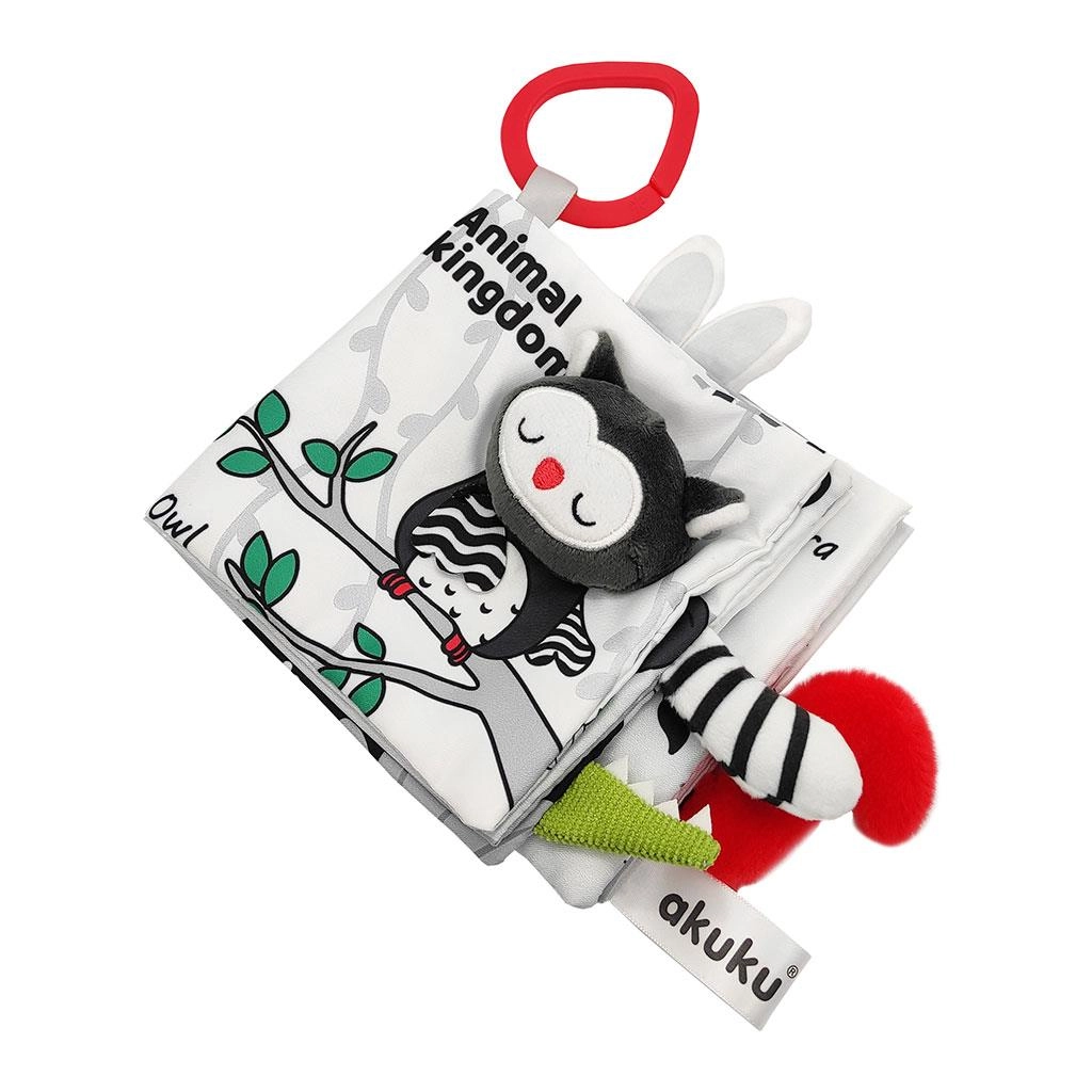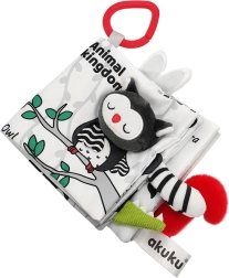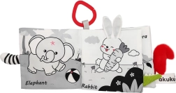 Senzorická kontrastná knižka Akuku zaujme bábätko hneď od narodenia. Špeciálne zvolené čiernobiele a kontrastné farby stimulujú zrak, zatiaľ čo rozmanité povrchy a zvuky podporujú hmatové, sluchové aj pohybové zručnosti. Knižka je ľahká, mäkká a príjemná na dotyk – ideálna na prvé objavovanie.