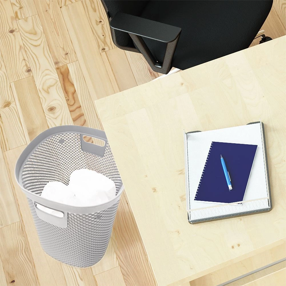 Praktický kancelársky kôš na odpad s objemom 12,5 l v elegantnej sivej farbe. Vďaka pevnej konštrukcii, vetracím otvorom a pohodlným úchytom je ideálny do kancelárie, domácej pracovne aj čakární. Rozmery: 26,5 × 26,5 × 30 cm.