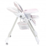 Praktická a štýlová jedálenská stolička BABY MIX Infant v ružovej farbe je vhodná pre deti od 6 do 36 mesiacov (do 15 kg). Ponúka 7 úrovní výšky, polohovateľnú opierku chrbta v 3 pozíciách, dvojpolohovú podnožku a dvojitý odnímateľný pultík. Pre jednoduché presúvanie nechýbajú kolieska s brzdami, košík na potreby a ľahko umývateľný poťah pre rýchlu údržbu.