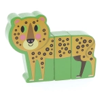 Drevené puzzle Veselé safari prinášajú deťom od 2 rokov zábavu trochu inak: každé zvieratko je zložené z masívnych dielikov so skrytými magnetmi, ktoré k sebe hladko priľnú. Dieliky možno vymieňať medzi jednotlivými zvieratami a vytvárať tak zábavné „hybridy“, ktoré podnecujú fantáziu a zvedavosť.