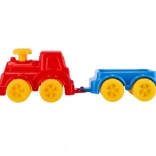 Súčasťou je odpojiteľný vagónik, ktorý sa jednoducho pripojí späť — deti tak môžu „prepravovať náklad“, rozvíjať jemnú motoriku, koordináciu ruky a oka aj fantáziu. Hračka je vhodná od 12 mesiacov a vďaka plastovému materiálu je perfektná aj na piesok.