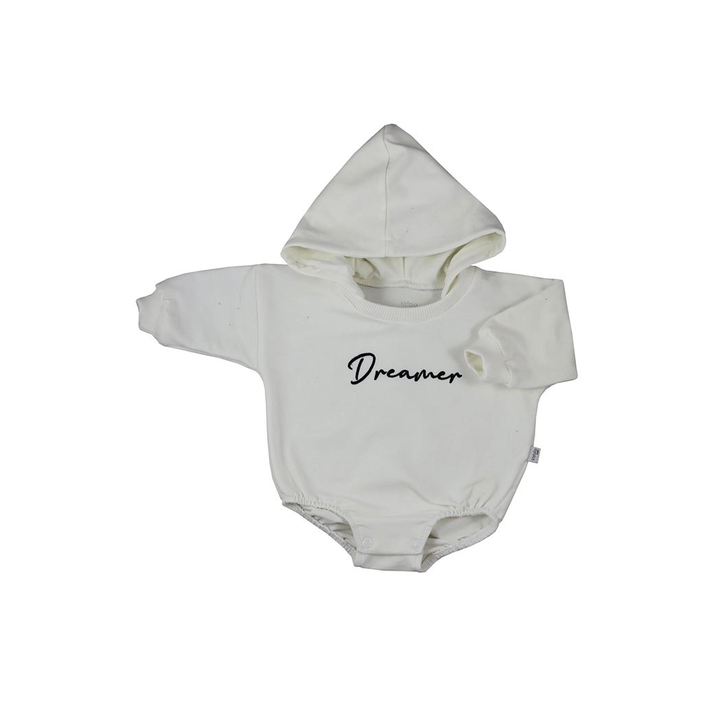 Štýlové a praktické body pre bábätko, ktoré vďaka dlhým rukávom, kapucni a pohodlnému zapínaniu na patentky medzi nožičkami udrží vaše dieťatko v teple a pohodlí. Mäkká teplákovina zo 96 % bavlny a 4 % elastanu je priedušná a pružná, zatiaľ čo baggy strih zabezpečuje voľnosť pohybu. Nápis Dreamer dodáva moderný vzhľad.