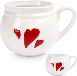 Užite si obľúbené horúce nápoje so štýlom a romantickým nádychom. Tento biely keramický hrnček s objemom 800 ml s reliéfnymi červenými srdiečkami je skvelou voľbou na každodenné používanie. Vďaka robustnému prevedeniu, širokému hrdlu a pohodlnému uchu sa z neho príjemne pije a zároveň sa ľahko udržiava.