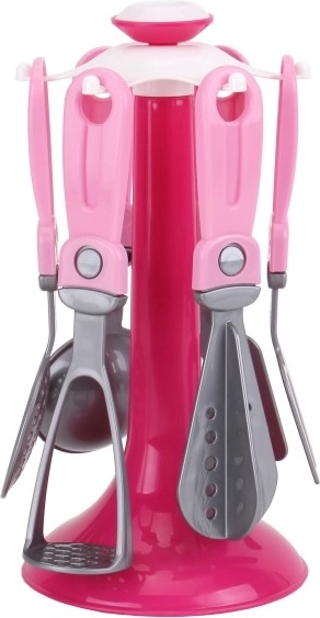 Ak ste milovníkom dizajnových vecí, potom vám doma nesmie chýbať tento originálny stojan s kuchynským náradím pre malé gazdinky. Nevyhnutný doplnok pre všetky malé kuchárky a pomocníčky v domácnosti alebo pre dievčatká, ktoré by rady uvarili niečo dobré svojim bábikám. Súprava obsahuje 6 ks náradia spolu s praktickým stojanom, takže budete mať všetko po ruke. Všetko je vyrobené z kvalitného a nezávadného plastu. Vhodné pre deti od 3 rokov.