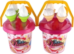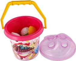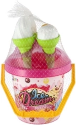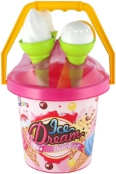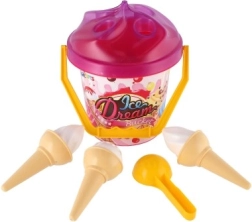 Roztomilá piesková sada „Ice Dream Bucket“ premení každé pieskovisko alebo pláž na malú zmrzlináreň. Deti si s ňou užijú kreatívnu hru na zmrzlinu, budú naberať piesok zmrzlinovou lopatkou a tvoriť kopečky do kornútov. Ľahká, farebná a bezpečná hračka s certifikáciou CE je ideálna pre deti od 1 roka.