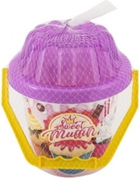 Ľahké vedierko s uchom a motívom Sweet Muffin slúži ako úložný priestor pre celú sadu a uľahčuje prenášanie v sieťke.