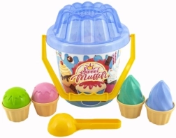 Sada obsahuje štyri farebné „kopečky“ a kornúty, vďaka ktorým deti vytvárajú pieskové zmrzliny a rozvíjajú fantáziu pri hraní.