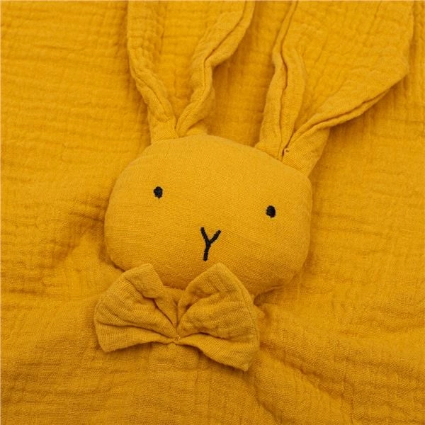 Hebký mušelínový muchláčik New Baby Rabbit v horčicovej farbe je ideálny prvý maznáčik pre bábätko. Je vyrobený zo 100% organickej bavlny s mäkkou výplňou a pomáha navodiť pocit bezpečia a pokojné zaspávanie. Minimalistický dizajn a jemné farby sa skvelo hodia do každej výbavičky a výborne ladia s ďalšími mušelínovými produktmi.