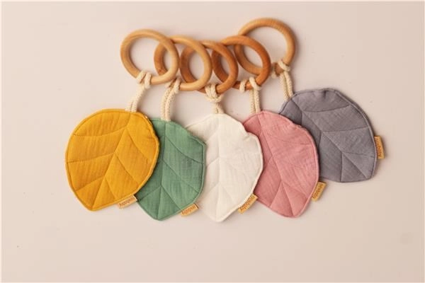 Hryzadlo NEW BABY Leaf v bielej farbe je navrhnuté tak, aby upokojilo citlivé ďasná bábätiek počas prerezávania zúbkov. Hladký drevený krúžok sa príjemne drží v malých rúčkach a mäkké mušelínové listy z organickej bavlny zabezpečujú jemnú stimuláciu aj pohodlie.