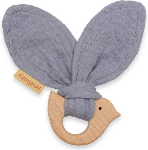 Hryzátko s vtáčikom New Baby Bird v elegantnej sivej farbe je navrhnuté pre maximálne pohodlie a bezpečie dieťaťa. Prírodné bukové drevo je hladké, odolné a šetrné k citlivým ďasnám, zatiaľ čo mušelín zo 100% organickej bavlny je mäkký, priedušný a príjemný na dotyk. Spoločne tvoria praktickú a estetickú pomôcku na každodenné používanie.