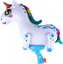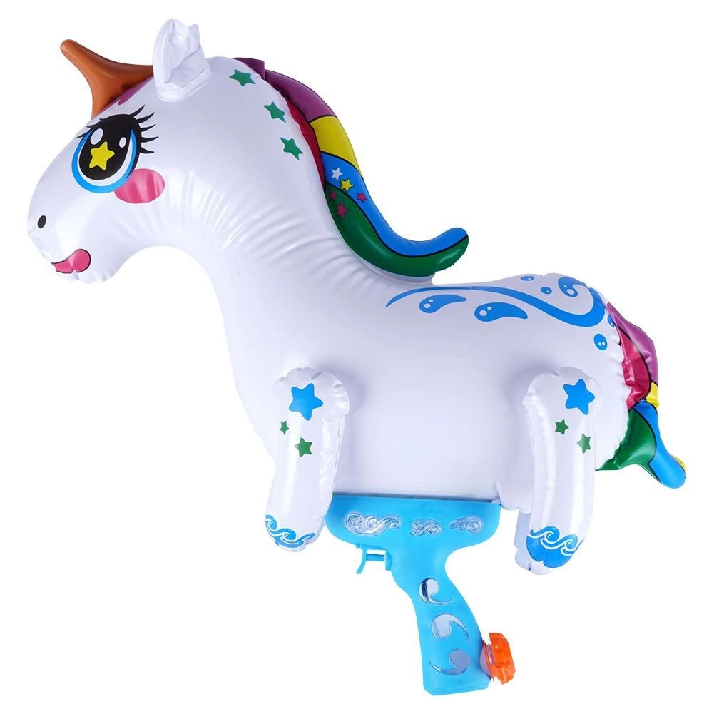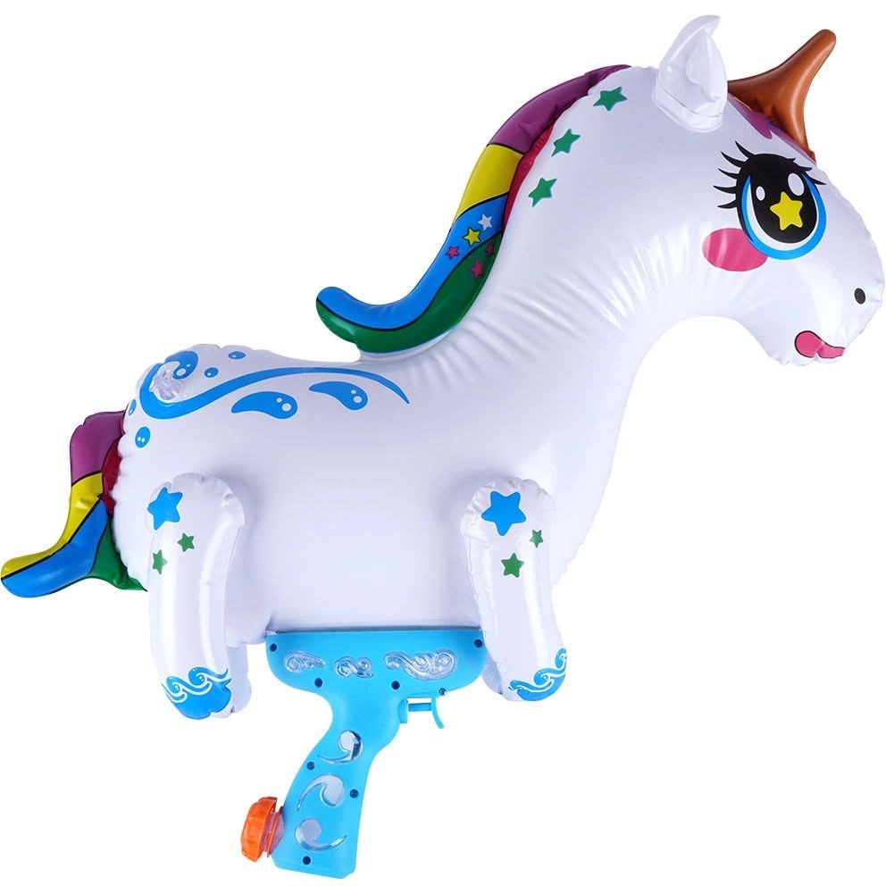 Zábavná nafukovacia vodná pištoľ v tvare jednorožca na hry pri vode aj vonku. Súčasťou je pištoľ a pumpička. Rozmery pištole: 55 × 18 × 58 cm. Veľký zásobník na vodu, jednoduché používanie a odolné vyhotovenie zaistia hodiny skvelej zábavy.