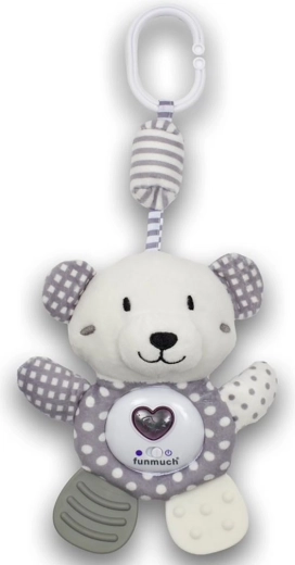 Roztomilý plyšový medvedík BABY MIX na zavesenie poteší najmenších svojím svetelným a hudobným efektom, jemnými vibráciami po natiahnutí a farebnými hryzadlami. Vďaka praktickému klipu ho ľahko pripevníte na kočík, autosedačku či postieľku. Vyrobený z mäkkého, príjemného materiálu a vhodný pre deti od narodenia.