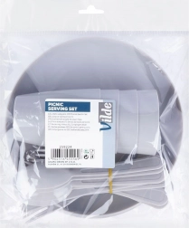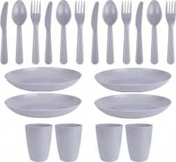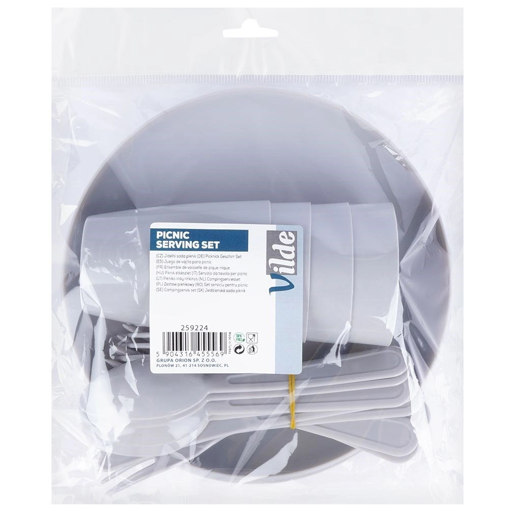 Užite si vonkajšie stolovanie bez starostí. Táto praktická sada obsahuje všetko, čo potrebujete na servírovanie nápojov, hlavných jedál aj desiat. Vďaka nízkej hmotnosti a odolnému materiálu je perfektná na pikniky, do kempu aj na záhradu. Vhodná pre dospelých aj deti.