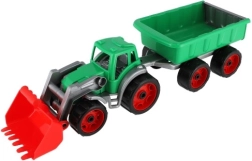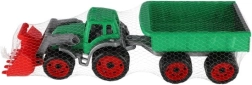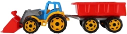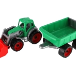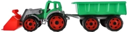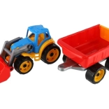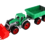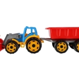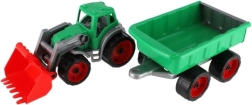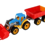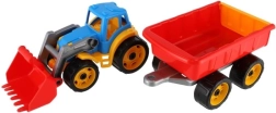 Tento traktor s nakladačom a vlekom je vyrobený z robustného plastu, ktorý zvládne detské hry a odolá poškodeniu.
