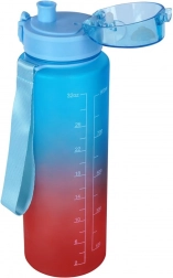 Praktická športová fľaša s objemom 1 l s ombré dizajnom modrej a červenej vás udrží hydratovaných po celý deň. Má časové značky a motivačné nápisy, mierku v ml a fl oz, tesniace flip viečko s poistkou a pohodlný náustok na ovládanie jednou rukou. Ľahká, odolná a s pútkom na jednoduché nosenie na šport, do práce aj na výlety.