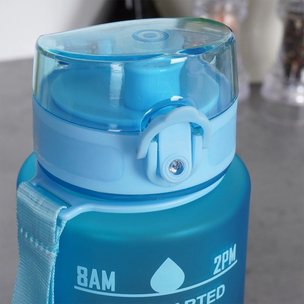 Užite si pravidelnú hydratáciu s ľahkou a odolnou fľašou s objemom 1 liter. Vďaka časovým značkám a motivačným frázam budete piť priebežne počas dňa, zatiaľ čo presná mierka v mililitroch (100–900 ml) a fl oz vám pomôže kontrolovať príjem tekutín. Široké hrdlo uľahčí plnenie aj čistenie, flip viečko s poistkou proti nechcenému otvoreniu zase zaručí spoľahlivú tesnosť.