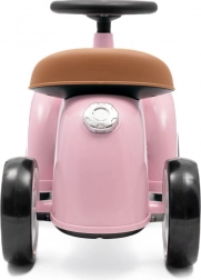 Štýlové detské odrážadlo v retro dizajne zaujme elegantnou ružovou farbou a premyslenými detailmi. Vďaka ľahkej konštrukcii, mäkkým EVA kolieskam a ergonomickému sedlu je ideálne na prvé krôčiky mobility. Volant s klaksónom a úložný priestor pod sedlom zaručia zábavu aj praktickosť, zatiaľ čo obmedzené natáčanie volantu pomáha zvýšiť stabilitu a bezpečie pri jazde doma aj vonku.