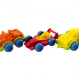 Farebné mini autíčka s dĺžkou 10–12 cm sa ľahko rozpohybujú ľahkým postrčením. Ideálne na rozvoj jemnej motoriky a koordinácie ruky a oka.